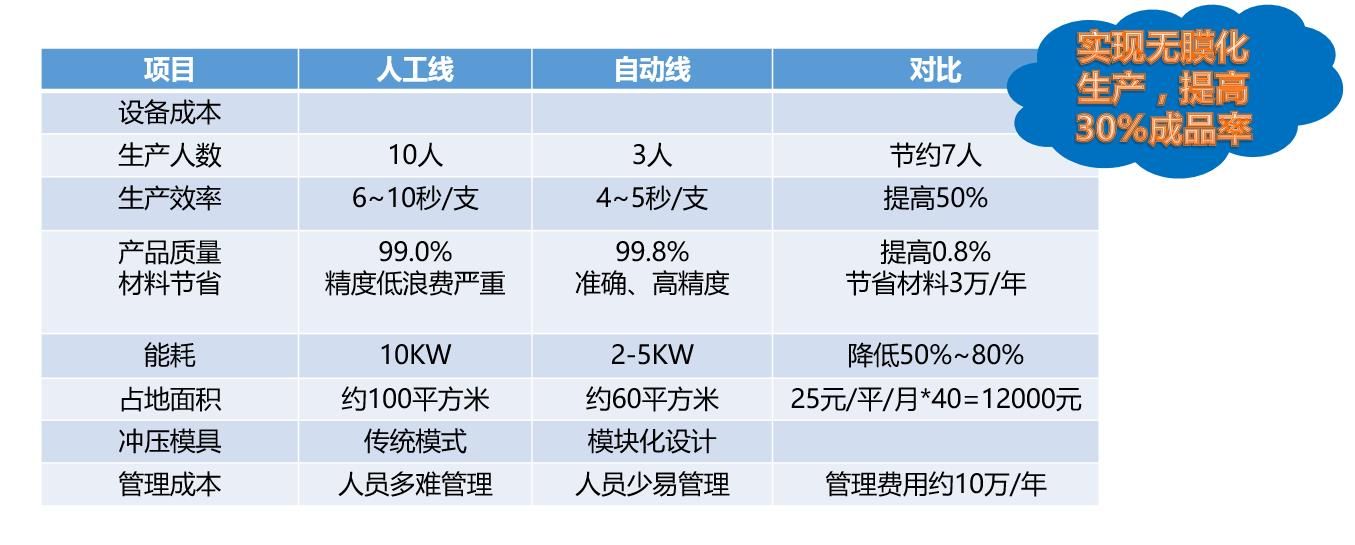 生產(chǎn)線只需要2~3人操作 整體效率可控制在4.5秒左右。